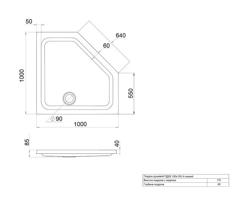 • Высота поддона 170мм