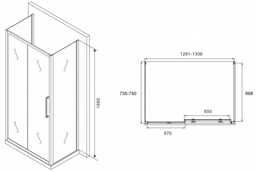 Душевой уголок ABBER Schwarzer Diamant AG30130H-S75-S75 130x75см хром