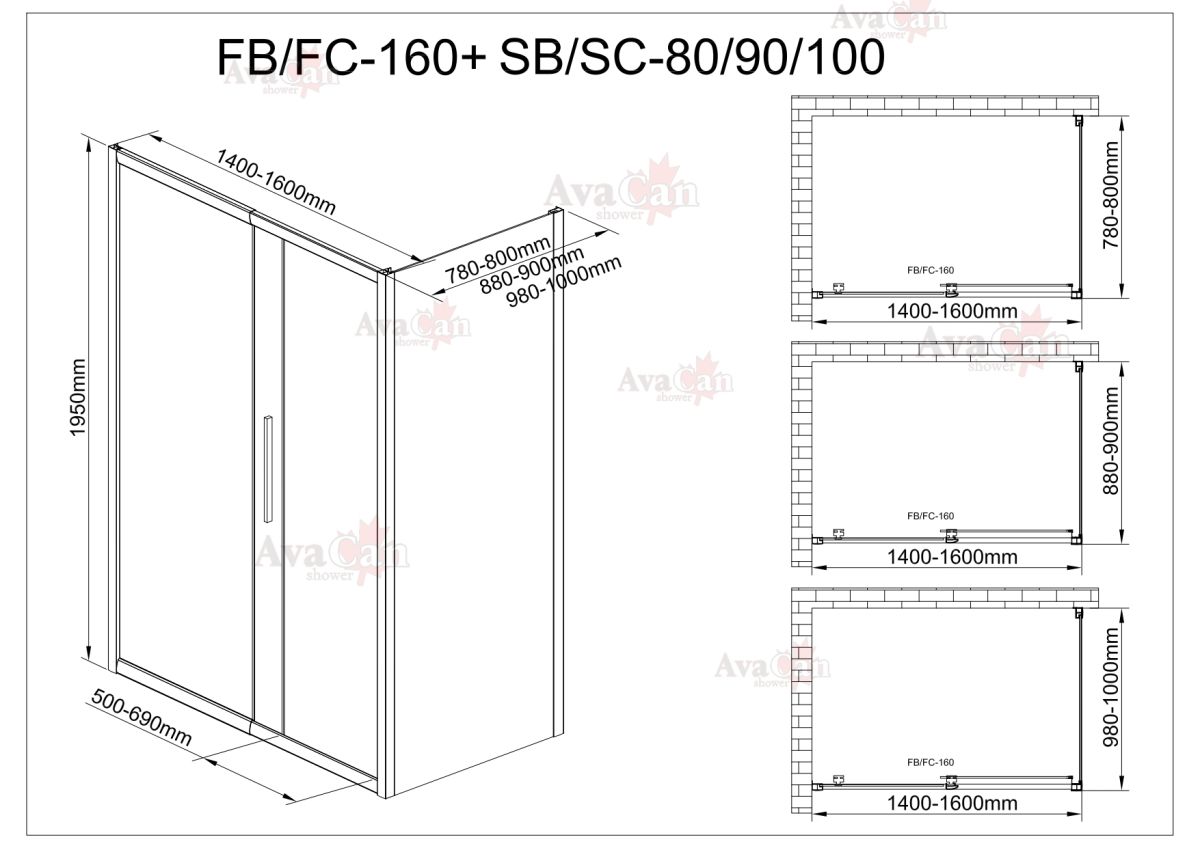 Душевой уголок AvaCan FB 140-160 + SB 80 MT чёрный
