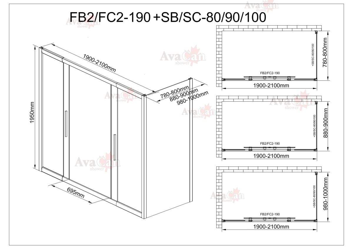 Душевой уголок AvaCan FC2 190-210 + SC100 MT хром