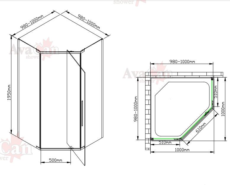 • Душевой уголок AvaCan PB 100 Black размер 980-1000-195