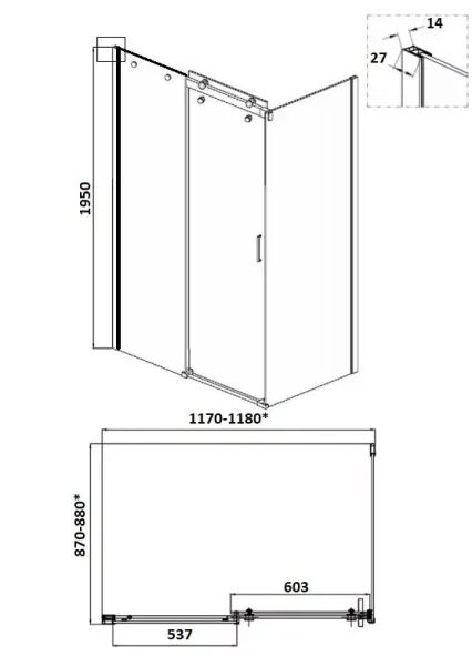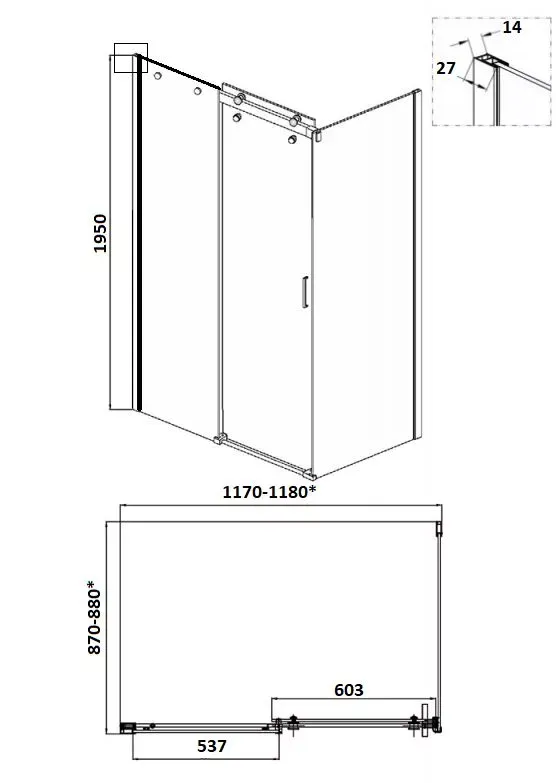 Раздвижная дверь с магнитным замком Soft close. В открытом состоянии створка не занимает полезную площадь в ванной. А магнитный замок обеспечивает плотное закрытие двери и предупреждает попадание воды на пол.