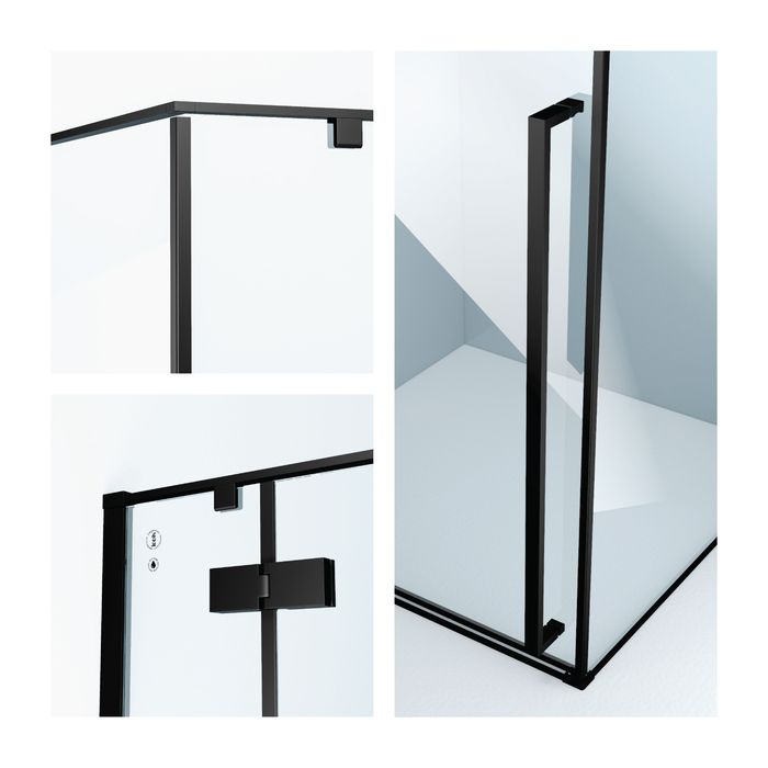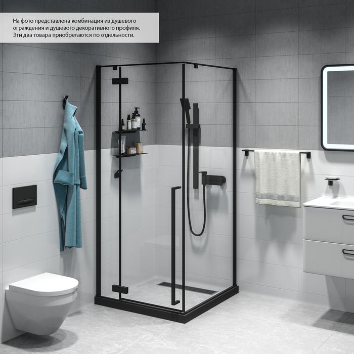 Душевое ограждение для ванной комнаты Slide стильного черного цвета – изящное решение для оформления ниши под душевую зону для тех, кто выбирает функциональный минимализм и чистые формы. Ограждение имеет удобный регулируемый размер 880-900х880-900х1950 мм, позволяющий сгладить неровность стен до 20 мм. Эргономичное решение для компактных пространств — установка двери возможна как с правой, так и с левой стороны.