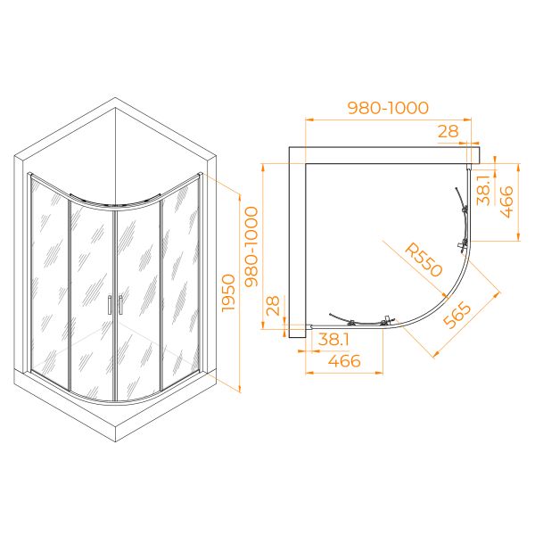 Высота данного душевого уголка составляет 195 см, что обеспечивает достаточное пространство для комфортного принятия душа. Высота, в сочетании с остальными параметрами, делает этот уголок идеальным выбором для семейного использования и для людей различного роста.