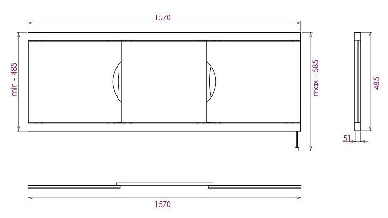 Ножки позволяют регулировать экран по высоте от 52 до 60 см, благодаря этому экран является универсальным и впишется в интерьер любой ванной комнаты.