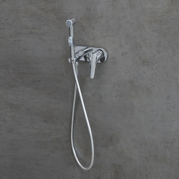 - Аксессуары в комплекте: лейка гигиенического душа с нажимным механизмом, шланг 1,2 м