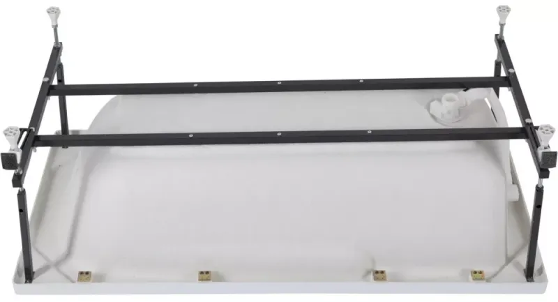 Каркас разборный для акриловой ванны Aquanet Extra 150 удобен в транспортировке, так как представляет собой набор деталей, которые необходимо собрать в надежную конструкцию самостоятельно. Металлические детали каркаса подвергаются трехступенчатой обработке, когда сначала профильная труба проходит абразивную зачистку на специальном станке, после чего готовые детали обрабатывают каустической содой, и, просушив, покрывают с помощью электростатического распылителя молотковой краской по металлу. Это гарантирует равномерность окрашивания и стойкость покрытия, благодаря чему каркас в сборе выглядит аккуратно и не ржавеет. Прост в сборке и установке. Расстояние от пола до нижней поверхности дна ванны можно регулировать максимально до 10 см с помощью ножек.