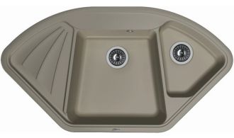 Угловая врезная мойка с двумя чашами для кухни Florentina Капри изготовлена из композитного материала.