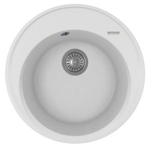 Круглая мойка с большой чашей для кухонного шкафа 45 смМатериал — кварцевый композитПредусмотрены дополнительные отверстия для установки аксессуаровГабариты нетто ( ДхШхВ) 510х510х217 мм