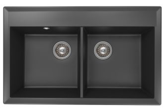 • Прямоугольная мойка с двумя большими чашами для кухонного шкафа 80 см
