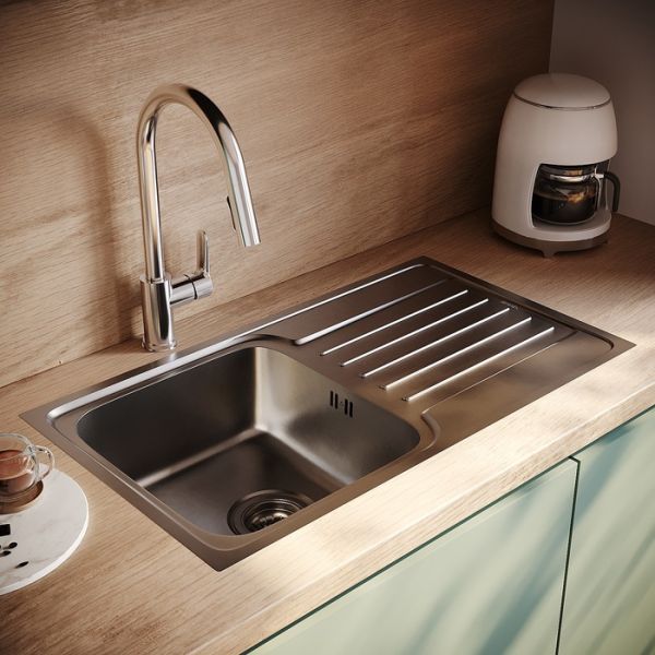 Мойка Sound – функциональность и актуальный дизайн, который подойдет почти к любой кухне. Крыло удобно использовать для сушки столовых приборов.