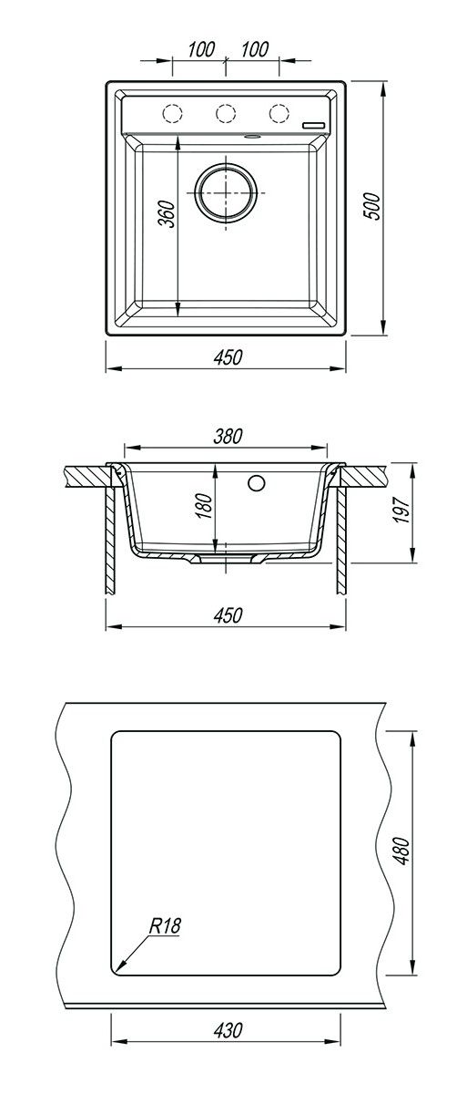 • Отверстия под смеситель: