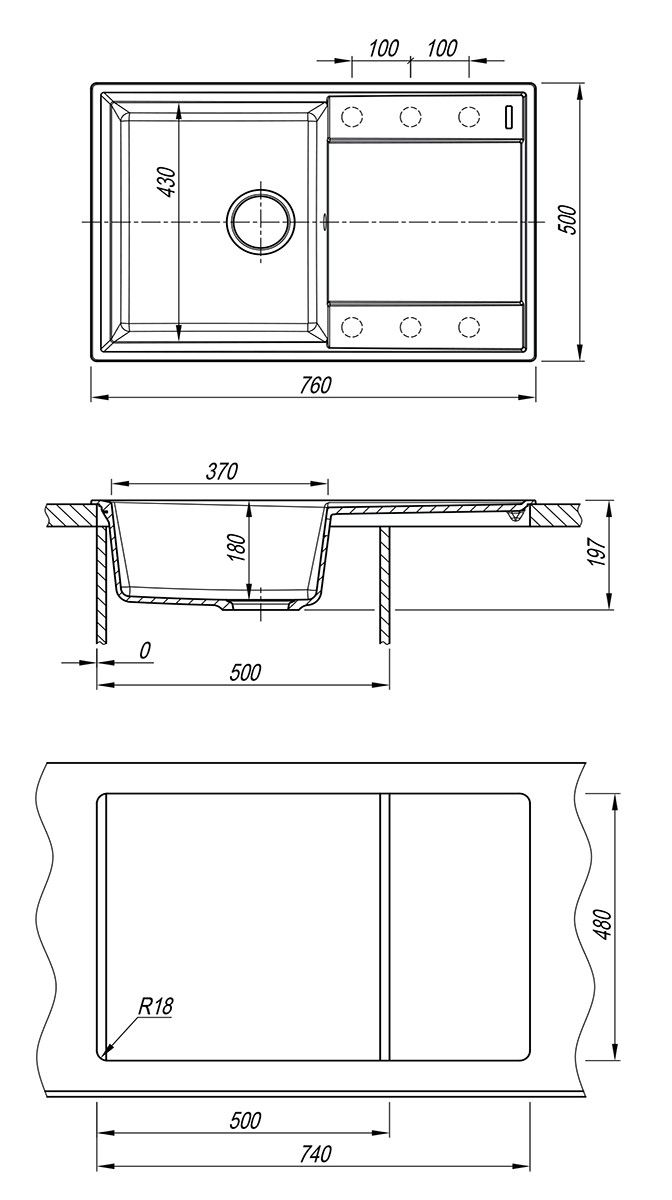 Односекционная мойка имеет прямоугольную форму с оборачиваемым крылом, на котором можно разместить вымытую посуду, а также моющие средства или дополнительные аксессуары и принадлежности.