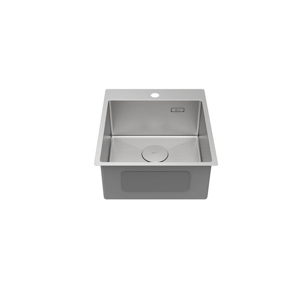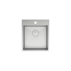 Прямоугольная мойка с площадкой для установки смесителя и других аксессуаров, несмотря на свои небольшие размеры, обеспечит владельца всем необходимым для удобства в использовании.