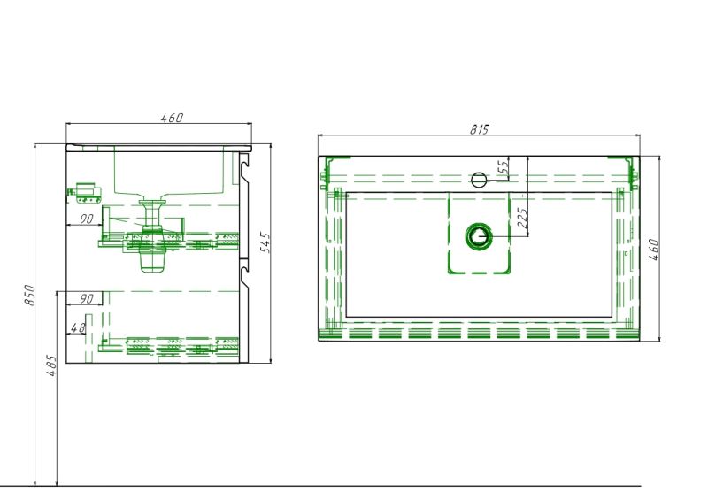 Габариты (ДхШхВ), мм: 810х460х1701 отверстие под смеситель, встроенный канал переливаДля сифона диаметром 1 1/4 x 32 ммМонтаж накладной (на тумбу)Расположение смесителя: по центру