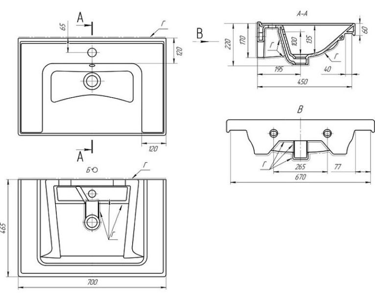 Мебельная раковина Dreja Грейс 70см белый 00000010735