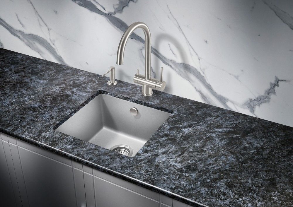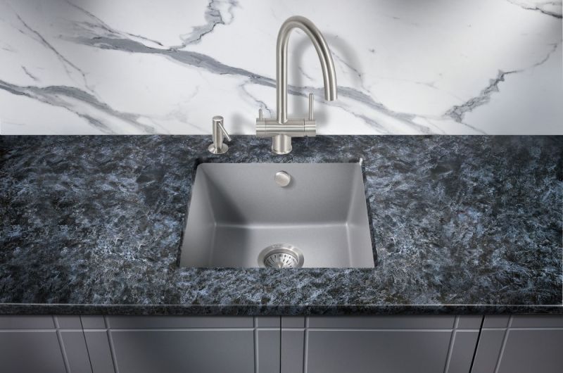 - Шумоизоляция. Материал обладает высокими шумо и виброподавляющими свойствами: кварцевая мойка не гремит и не вибрирует от воды или измельчителя в процессе эксплуатации.