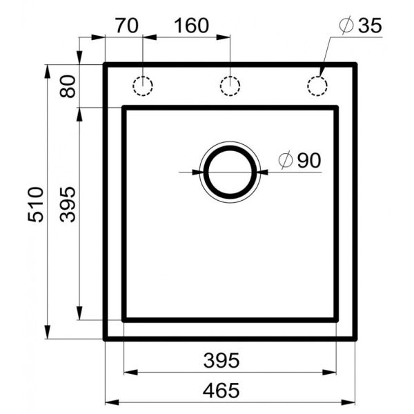 - с обратной стороны мойки намечены три места под отверстия для смесителей и дозаторов, что значительно облегчает установку;