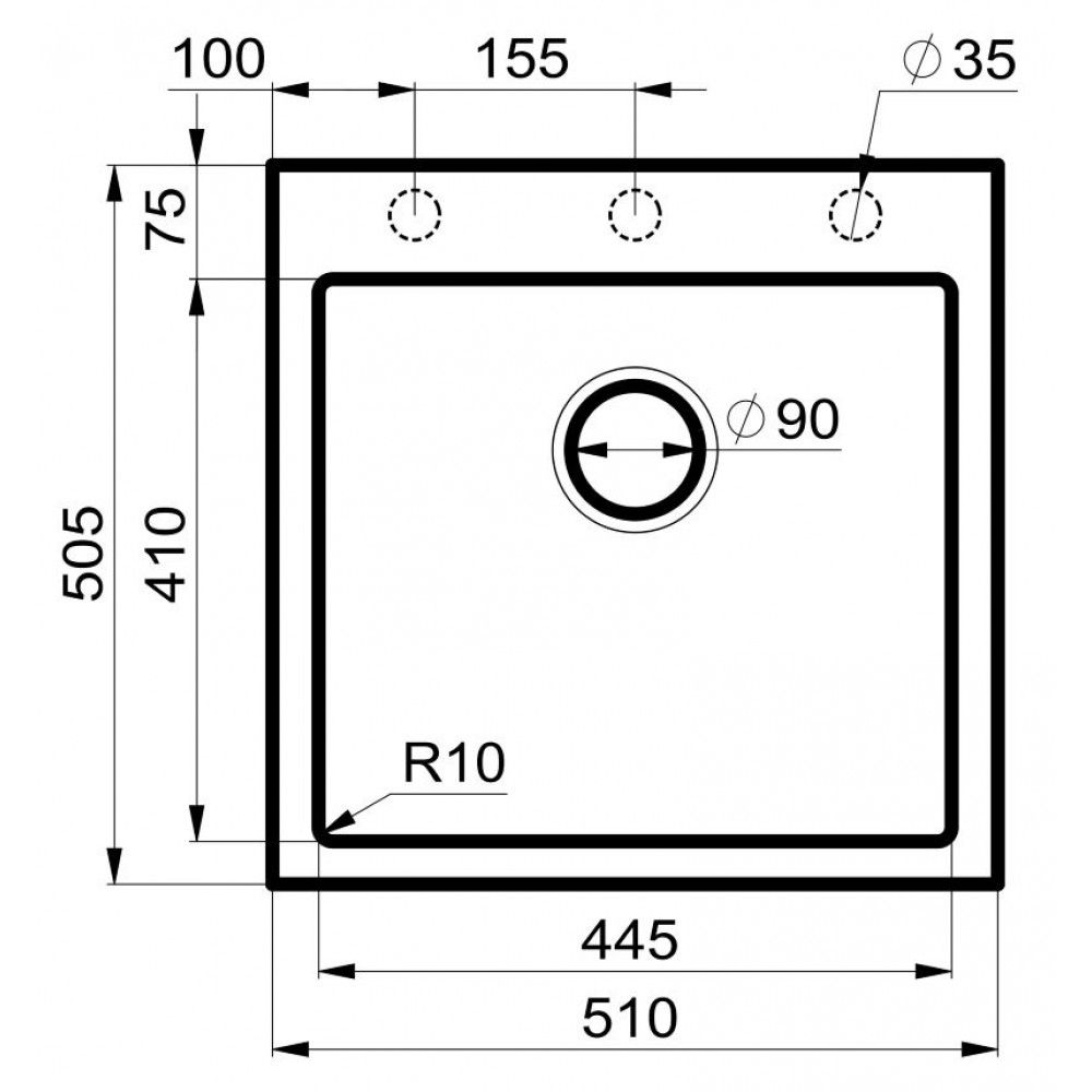- мойка имеет три метки для отверстий под смесители и дозаторы, что облегчает процесс их установки;