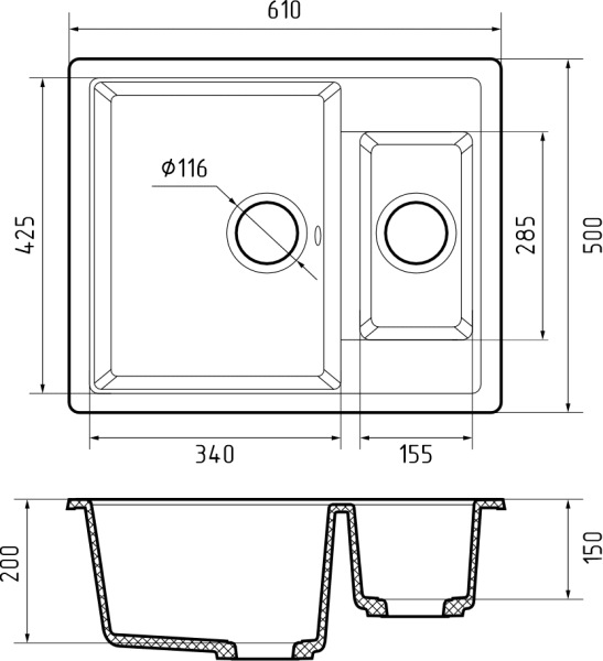 Мойка кухонная GranFest CLASSIC Q-610K черный