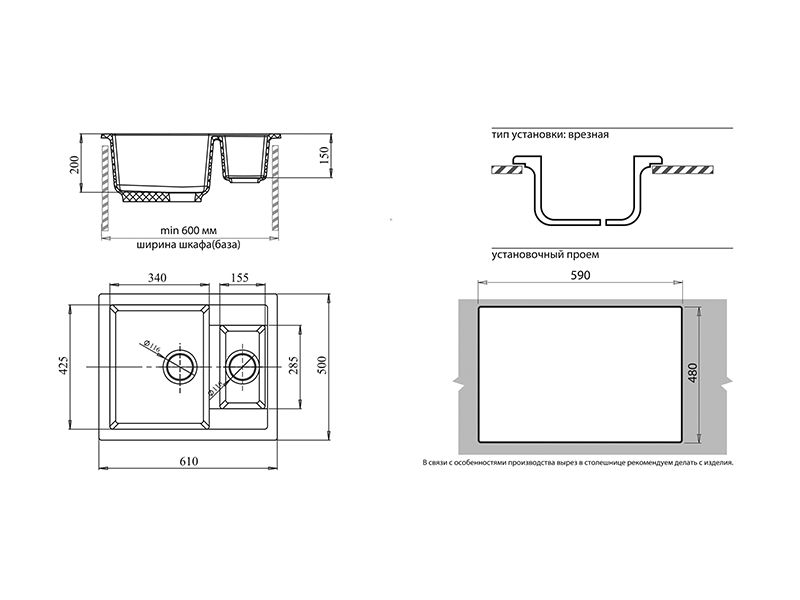 Размеры чаш: 340х425х200 мм, 155*285*150 мм