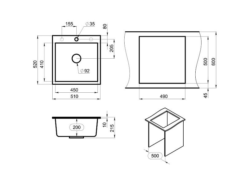 Мойка кухонная Granula 5102, ГРАФИТ Подробнее