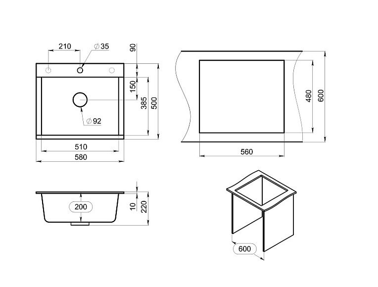 Мойка кухонная Granula 5804, БАЗАЛЬТ