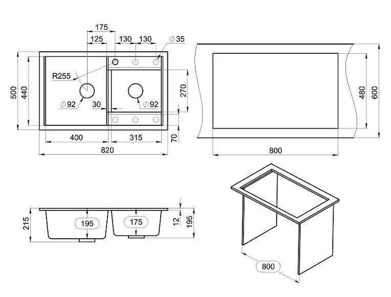 Мойка кухонная Granula 8201, ЧЁРНЫЙ Подробнее