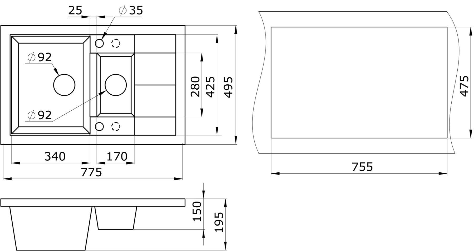 Эта двухчашевая модель с просторным крылом имеет реверсивную конструкцию.Поэтому у мойки Granula 7802 можно выбирать место установки смесителя.Дополнительная чаша может использоваться для размораживания или мытья продуктов, а наличие крыла увеличивает функциональность.Качественный материал увеличивает срок службы