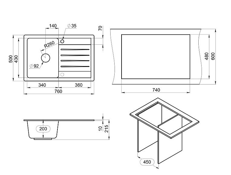 Мойка кухонная Granula Standart 7602, ГРАФИТ Подробнее