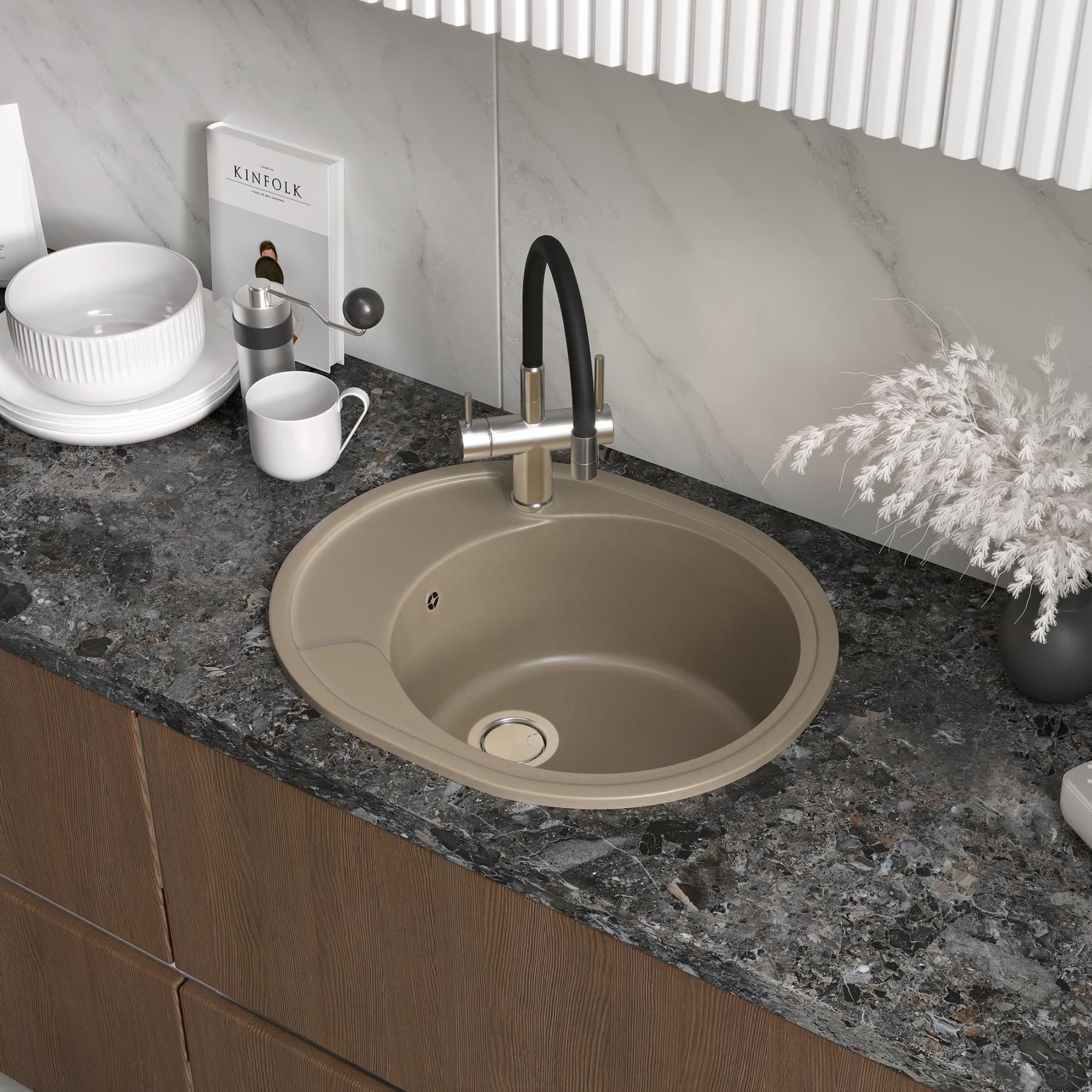 Удобная вместительная мойка подходит для установки как в угловой шкаф кухни, так и в прямые модули.