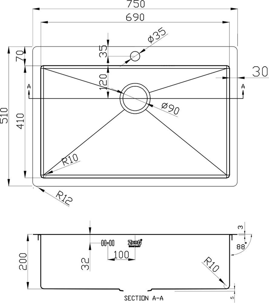 Мойка кухонная Zorg Inox R R 7551 купить