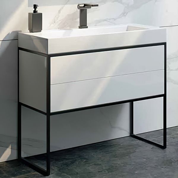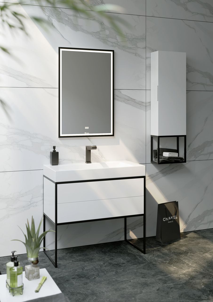 Напольная тумба под раковину Clarberg Logic 90 LOG0109N с двумя ящиками. Главная особенность коллекции - это применение алюминиевого анодированного профиля в чёрном цвете.Технические данные:Цвет: белый.