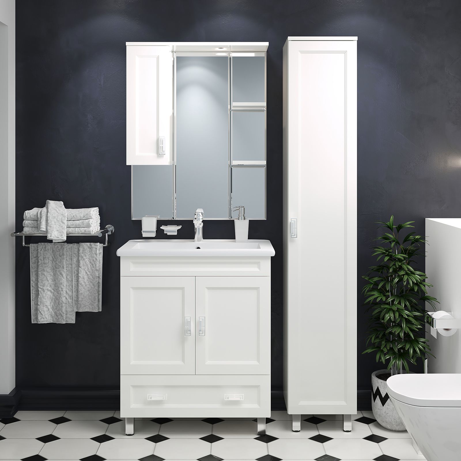 Шкаф-пенал для ванной комнаты – это стильное решение, которое гармонично вписывается в современный интерьер. Его элегантные линии и аккуратные формы создают атмосферу чистоты и порядка, что особенно важно в таком интимном пространстве. Изготовленный из качественных влагостойких материалов, этот шкаф обеспечивает долговечность и надежность, даже в условиях повышенной влажности.Основное преимущество шкаф-пенала заключается в его вместительности. Удобные полки и ящики позволяют организовать пространство и разместить все необходимое: от косметики до бытовых принадлежностей. Каждая деталь продумана для удобства использования, что делает утренние и вечерние ритуалы более приятными.Будь то строгий минимализм или уютный скандинавский стиль, шкаф-пенал станет акцентом, который подчеркивает индивидуальность вашего пространства. Не упустите возможность преобразить свою ванную комнату, добавив в нее этот элегантный и практичный элемент.