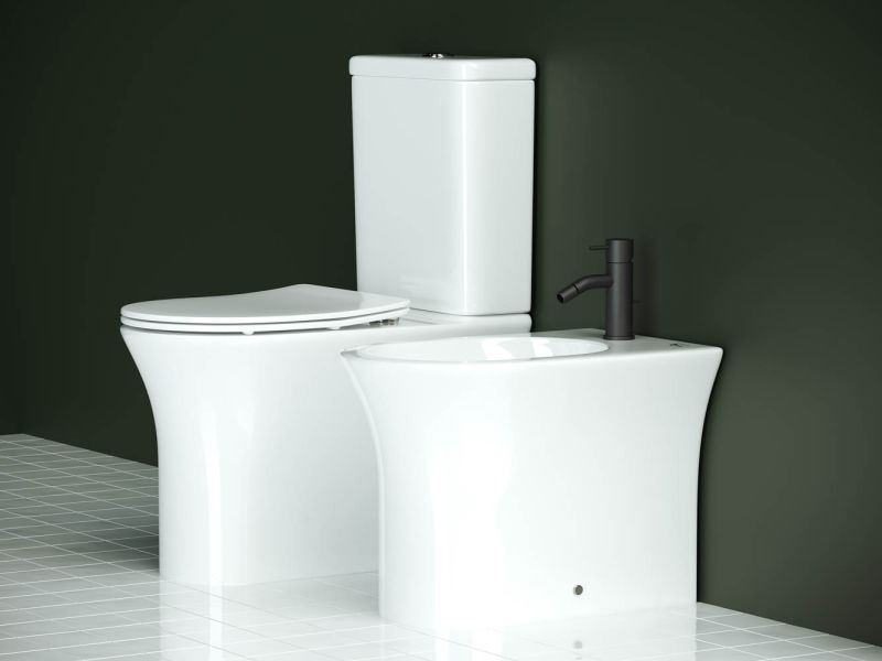 Напольный пристенный унитаз с бачком Star Rimless, двойной смыв 3/6, нижняя подводка глубокий смыв, горизонтальный (универсальный) выпуск, с крепежом, ультра тонким сидением с функцией плавного закрытия, дюропласт