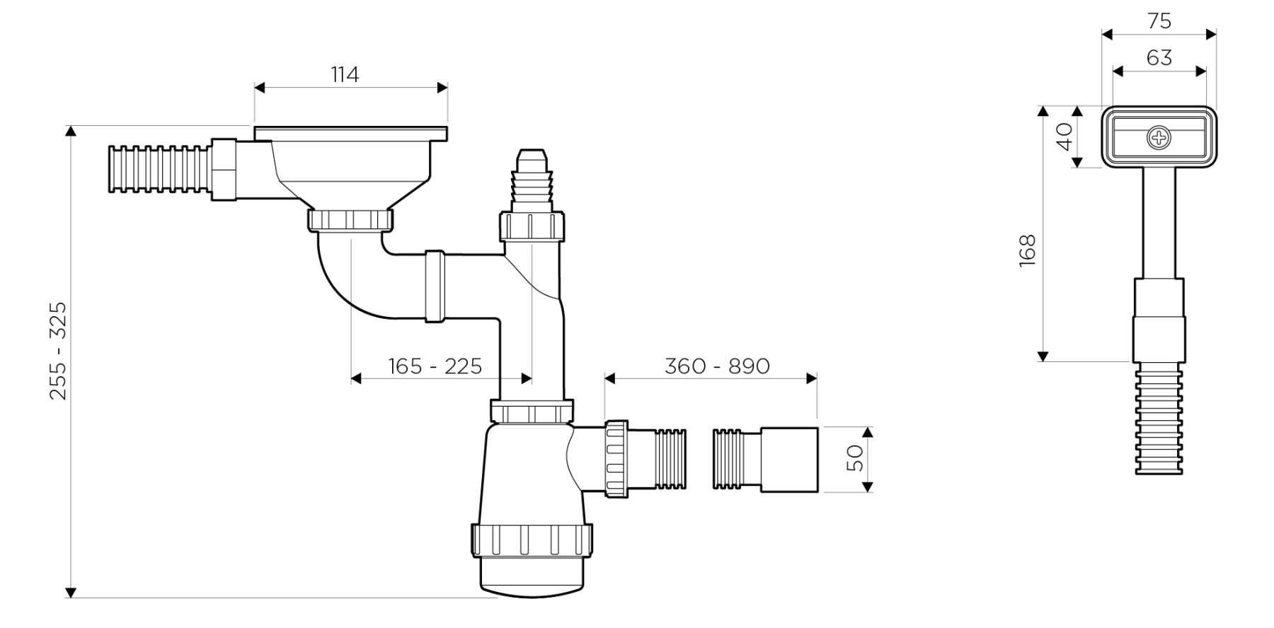 Арматура для одночашевых моек со скрытым переливом WK-1-S-IN
