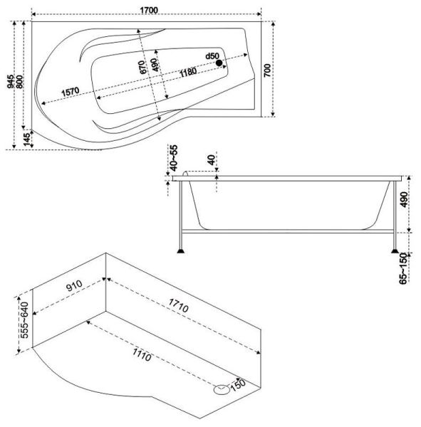Панель фронтальная для акриловой ванны BAS Капри левая 170х56 см