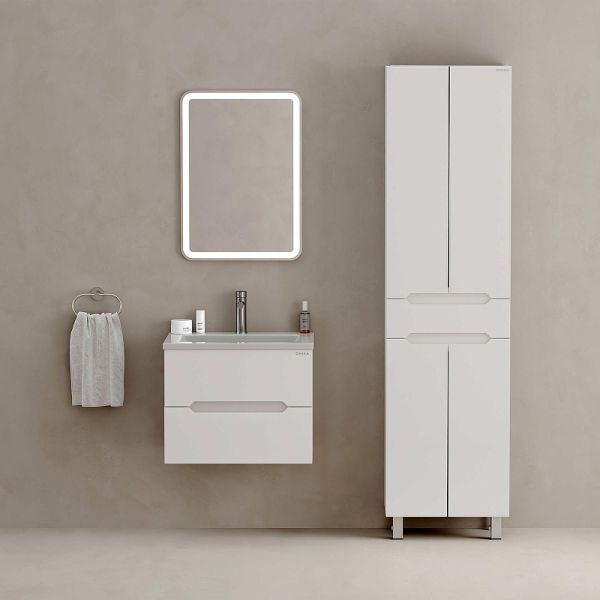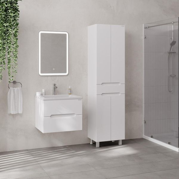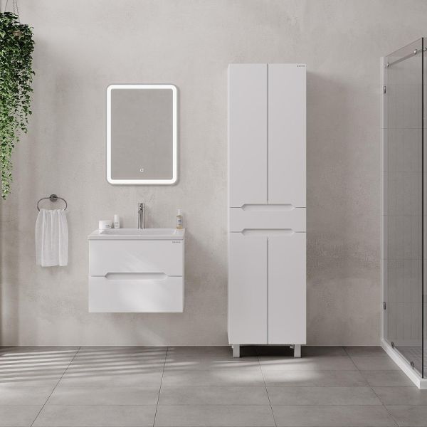 Напольный пенал для ванной комнаты Onika Айленд 50 сочетает в себе стильный минималистичный дизайн, белую глянцевую поверхность и высочайшее качество исполнения.