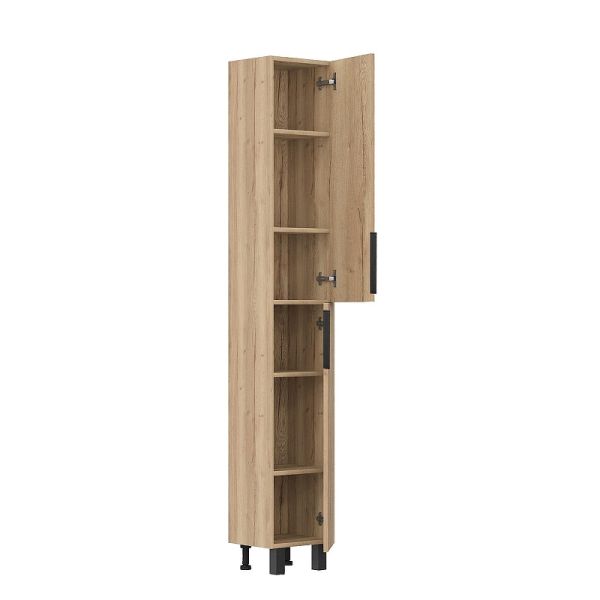 Напольный пенал для ванной комнаты Onika ЛЕГРАН 30 — это сочетание насыщенного древесного декора и благородства металла: роскошная текстура и натуральный цвет дуб галифакс дают теплоту, а матовая металлическая ручка добавляет урбанизма и солидности.