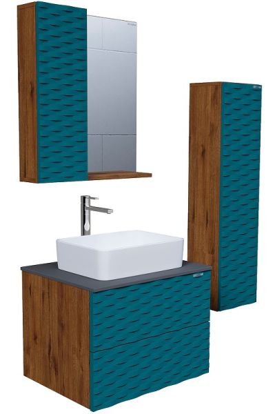 Подвесной пенал Альба- 30 смМатовая фактура в цвете Бриз с 3D рисунком безупречно сочетается с фактурой под дерево и позволяет пеналу органично вписаться в интерьер ванной комнаты.