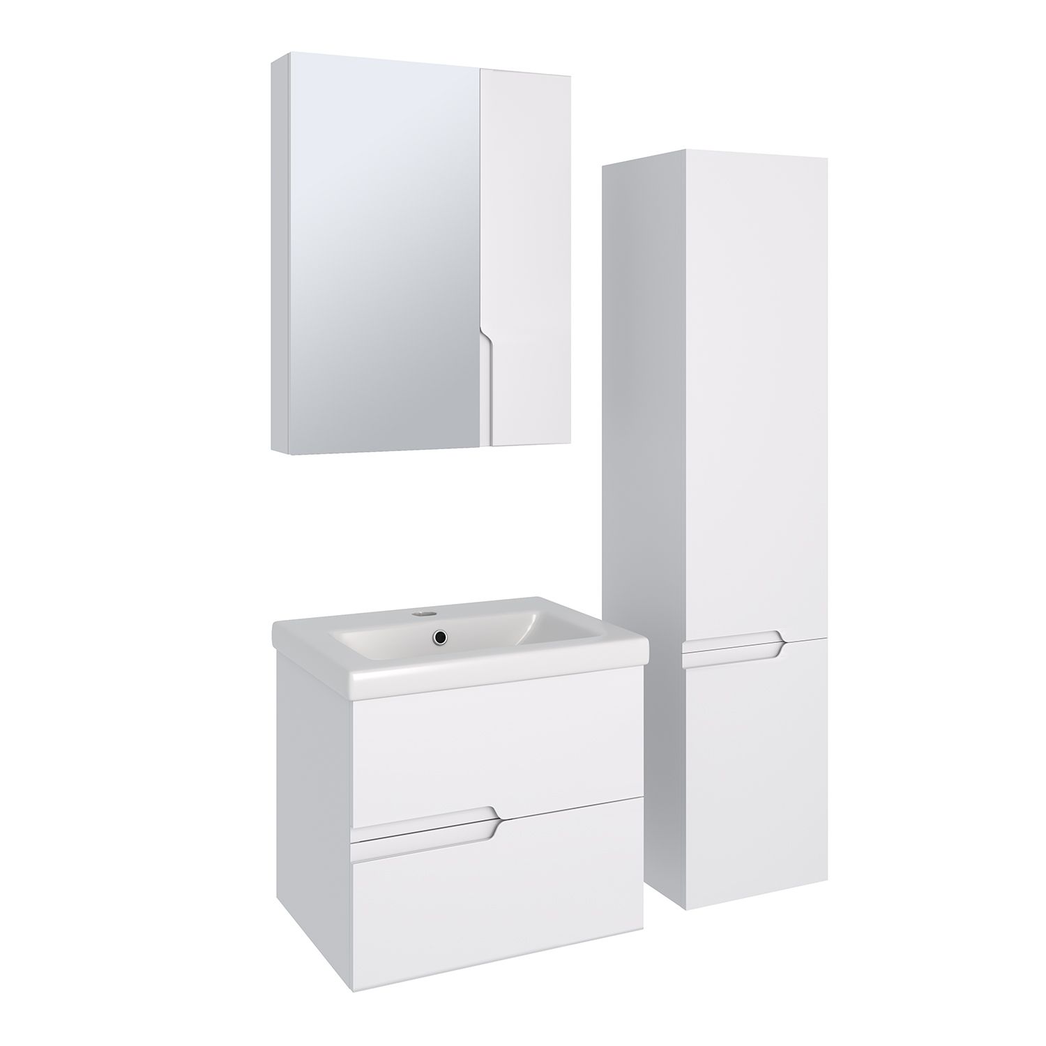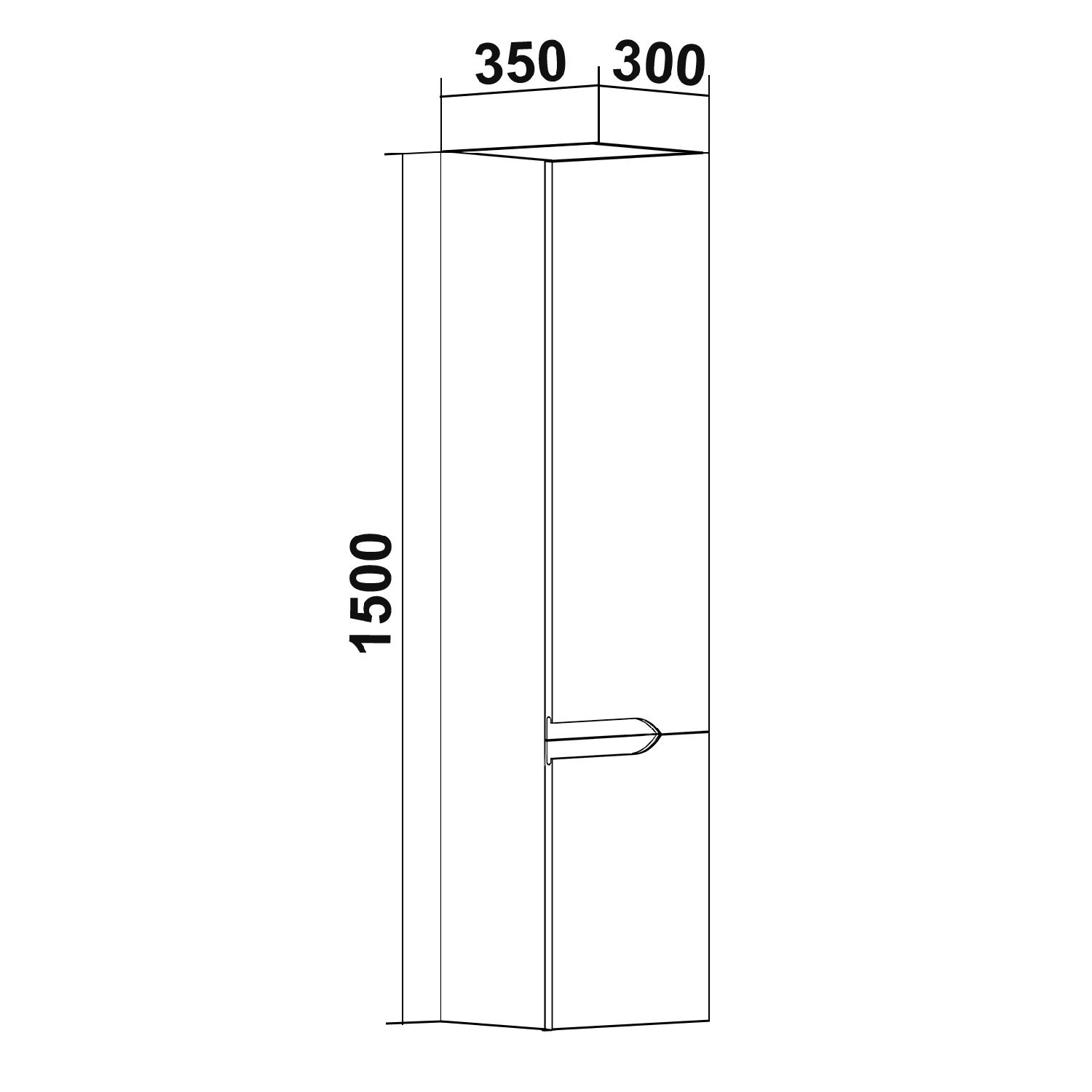 Шкаф-колонна подвесной с двумя отделениями и распашными дверками. В верхнем отделении - две встроенные полки, в нижнем - одна.  Выпускается только в правом исполнении.