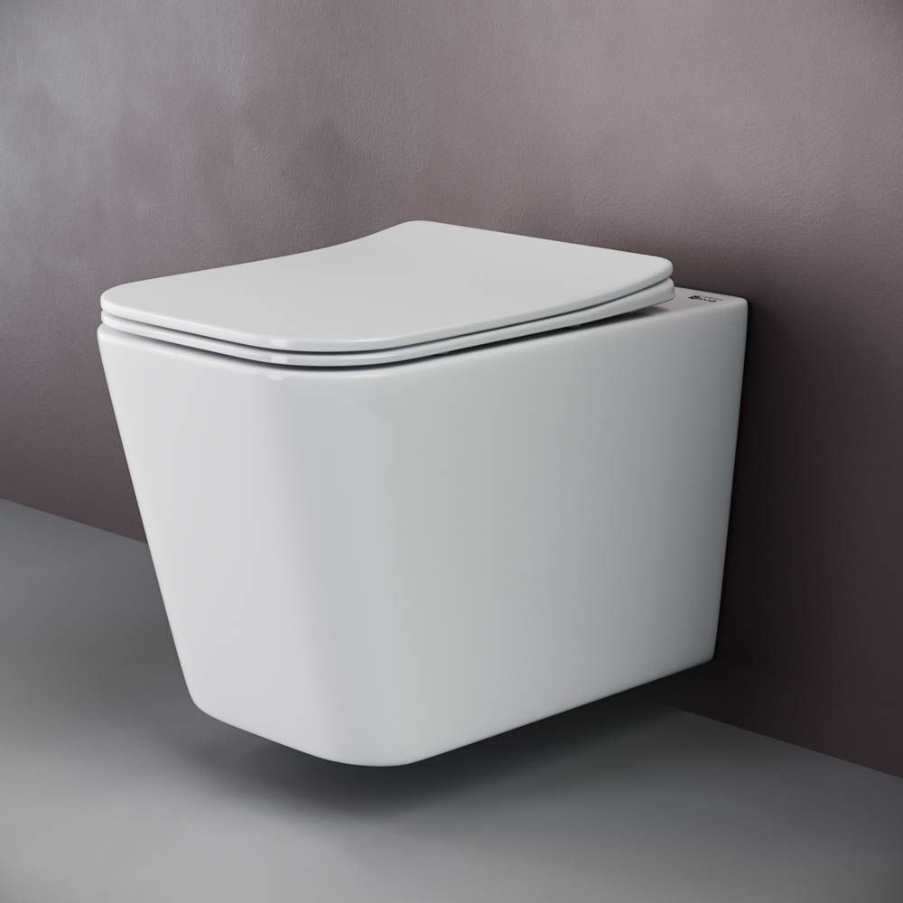 Подвесной унитаз Cubic Rimless, глубокий смыв, с крепежом для полностью скрытого монтажа, ультра тонким сидением с функцией плавного закрытия