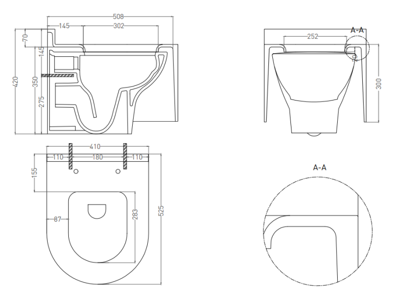 • Установка подвесного типа на инсталляцию, в комплект не входит