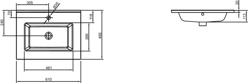 РАЗМЕТКА СВЕРЛЕНИЯ ОТВЕРСТИЯ ДЛЯ СМЕСИТЕЛЯ: С 1 отверстием для смесителя