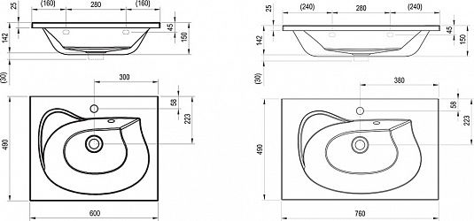 • Отверстия под смеситель: