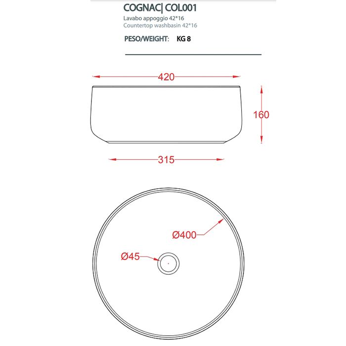 Раковина ArtCeram Cognac COL001 65 00 pale blue 42 смArtceram COGNAC Раковина настольная Ø 42 см, цвет pale blue