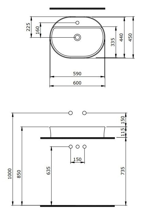 Накладная раковина из санфарфора Berges Ego размером 60х45х11,5 см.Овальной формы, с отверстием под смеситель, глянцевая белая.