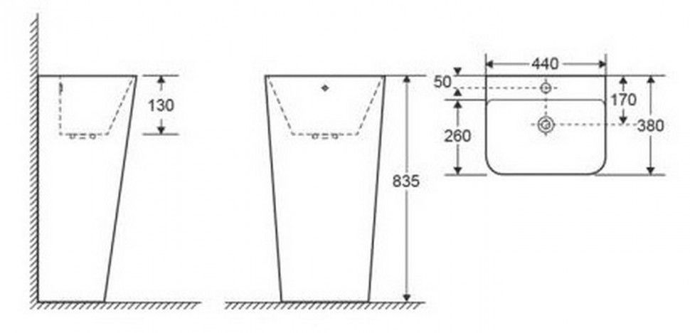 - Отверстия под смеситель:1