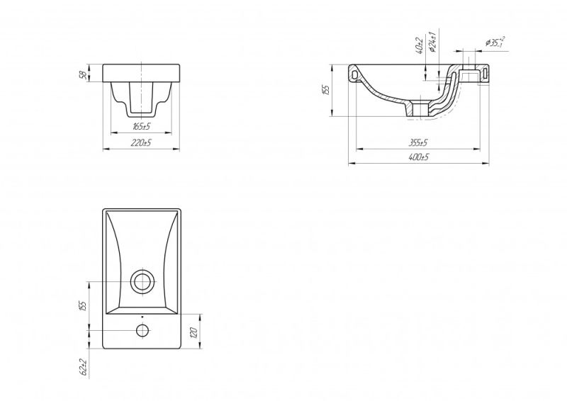 • Отверстия под смеситель: