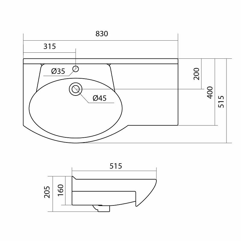 Размер (ШхВхГ): 830х205х515 мм.